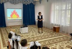«Атырау облысы Білім беру басқармасының Атырау қаласы білім бөлімінің» «№5 «Аққу» бөбекжай-бақшасы» КМҚК 2022-2023 оқу жылының «Өрт қауіпсіздігі» жоспары бойынша ортаңғы №3 «Балдырған» тобының тәрбиешісі Рискалиева Фарзана Жанатовна «Жас өрт сөндіруші» тақырыбында балалармен тақырыптық іс-әрекет көрсетті.