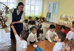 Кіші №2 "Қошақан " тобының тәрбиешісі А.Б.Зулхарова балалармен ойын түрінде іс-әрекет