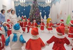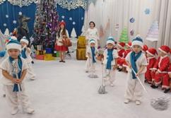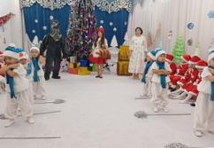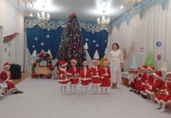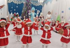 Жаңа жыл ертеңгілігі, ортаңғы 'Күншуақ" тобының бүлдіршіндері. Тәрбиешісі А.Б.Зулхарова